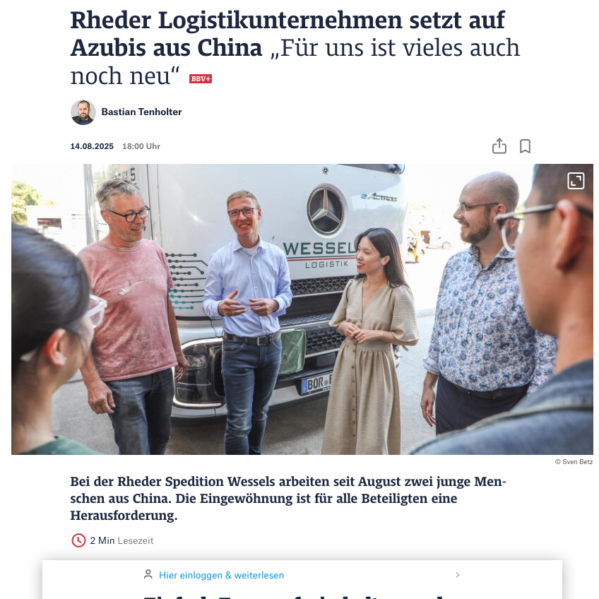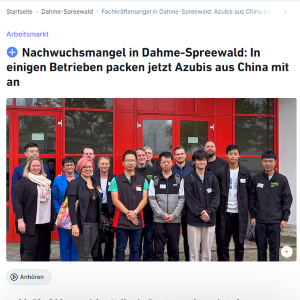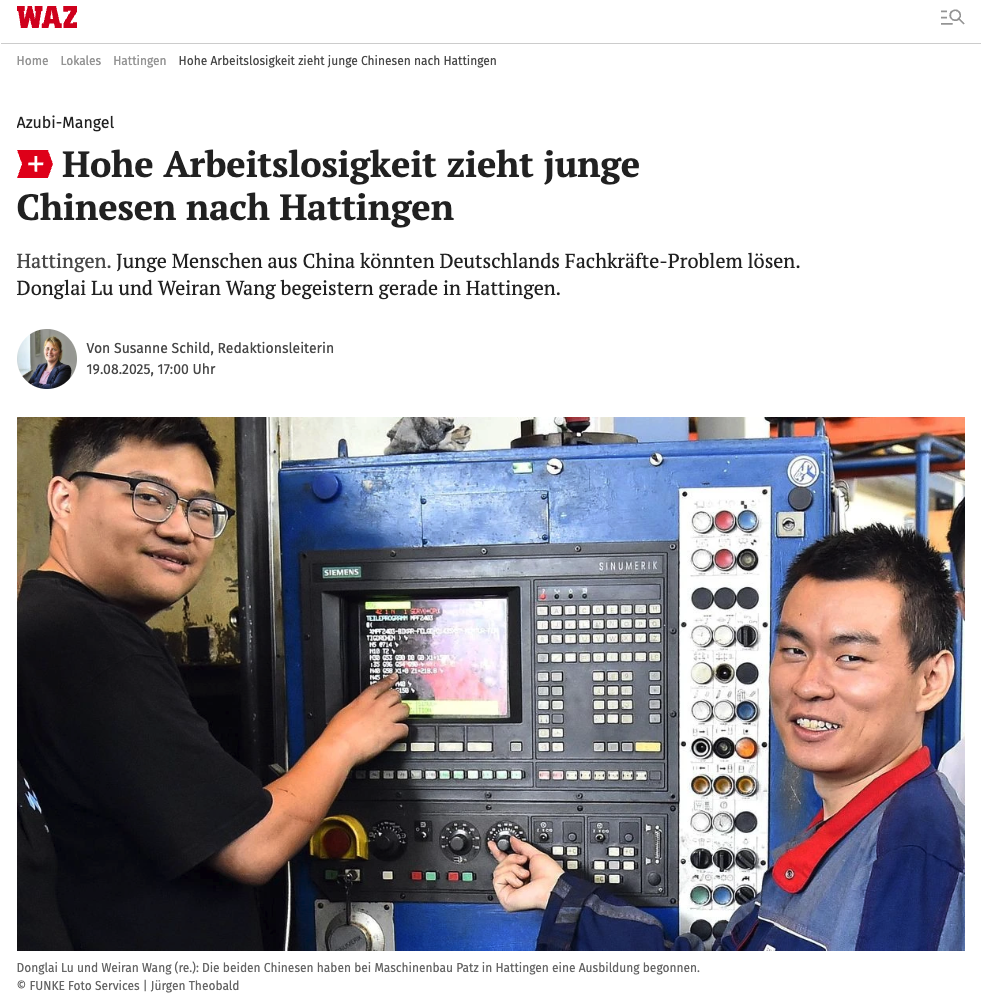 Durch die gezielte Anwerbung von chinesischen Interessenten gewinnen wir qualifizierte Auszubildende, die wir durch unser sprachlich-kulturelles Vorbereitungsprogramm fit für den Arbeitsalltag in Deutschland machen.